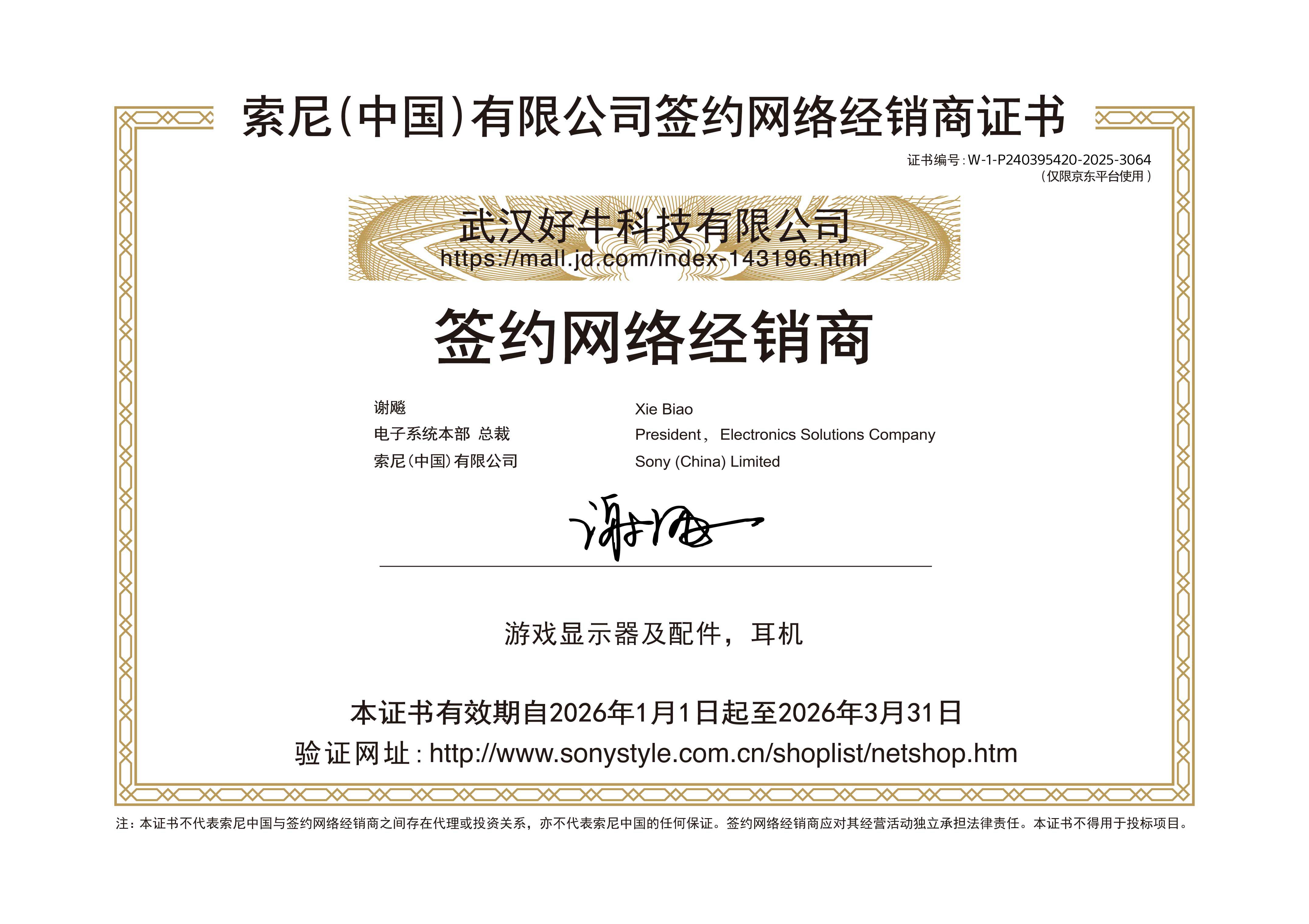 | 武汉好牛科技有限公司 | W-1-P240395420-2025-3064 | 京东 | https://mall.jd.com/index-143196.html | 查看证书收起证书 |