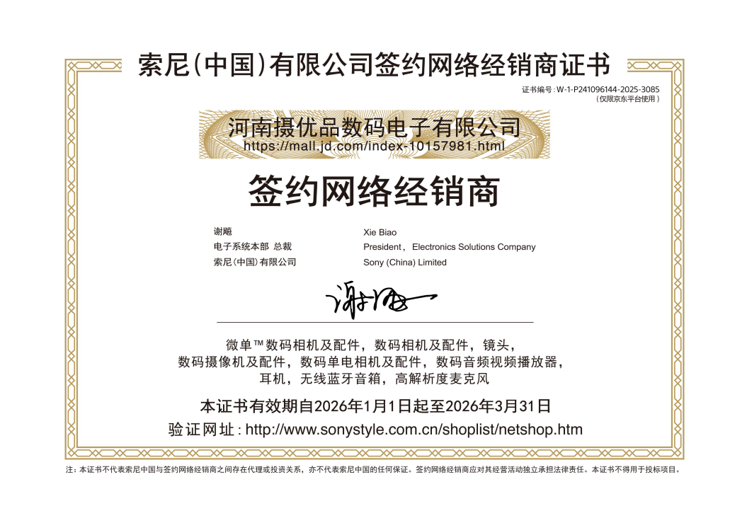 | 河南摄优品数码电子有限公司 | W-1-P241096144-2025-3085 | 京东 | https://mall.jd.com/index-10157981.html | 查看证书收起证书 |