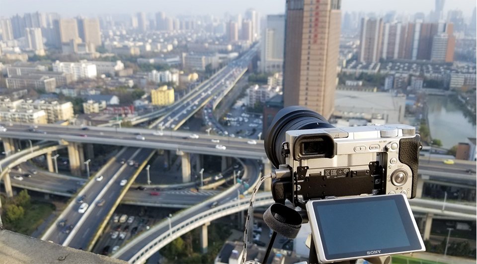 和E 10-18mm f/4 OSS来拍摄某处高架桥的日转夜延时视频。拍摄延时需要使用三脚架来固定机身,