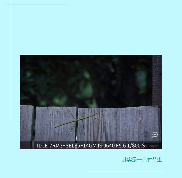 因为最近都是梅雨天,所以当天光照并不是非常强,天气阴沉沉的,但好在比较凉爽。一进村,同行的小伙伴就发现树下的栅栏上趴着“一截树枝”,得益于G大师镜头的大光圈,在这样阴沉的天气我可以不用牺牲感光度,也能保证画面的曝光,同时还能拥有极好的背景虚化效果。