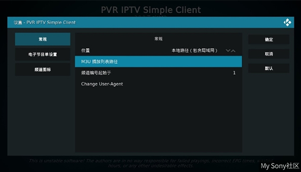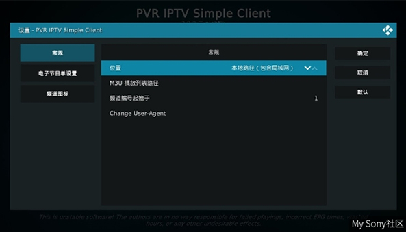 等下载好了就再点进“PVR IPTV Simple Client”选项并选择设置,在设置中选择常规找到位置选项,把远程路径改为本地路径。