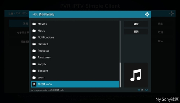 关于M3U文件下载,请在网络上搜索M3U直播源文件并下载进U盘以及拷贝进电视,小编我是通过百度搜索关键词“央视M3U”然后下载的。之后下移一格找到M3U播放列表,找到M3U文件的存放地址,再点击确定。