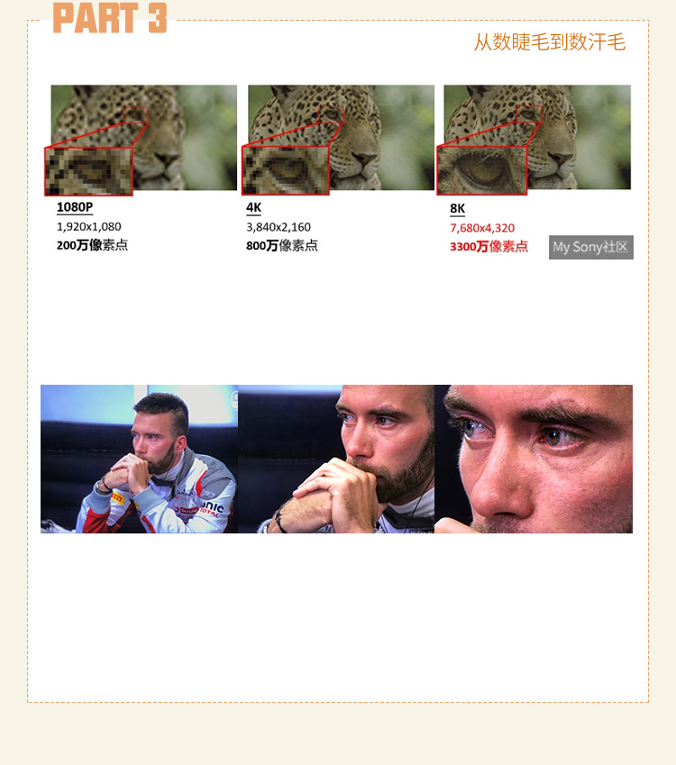 如果4K电视是数睫毛,已经让人感觉很逼真了,那么8K电视就是数汗毛,人物在你面前用个栩栩如生绝不为过!