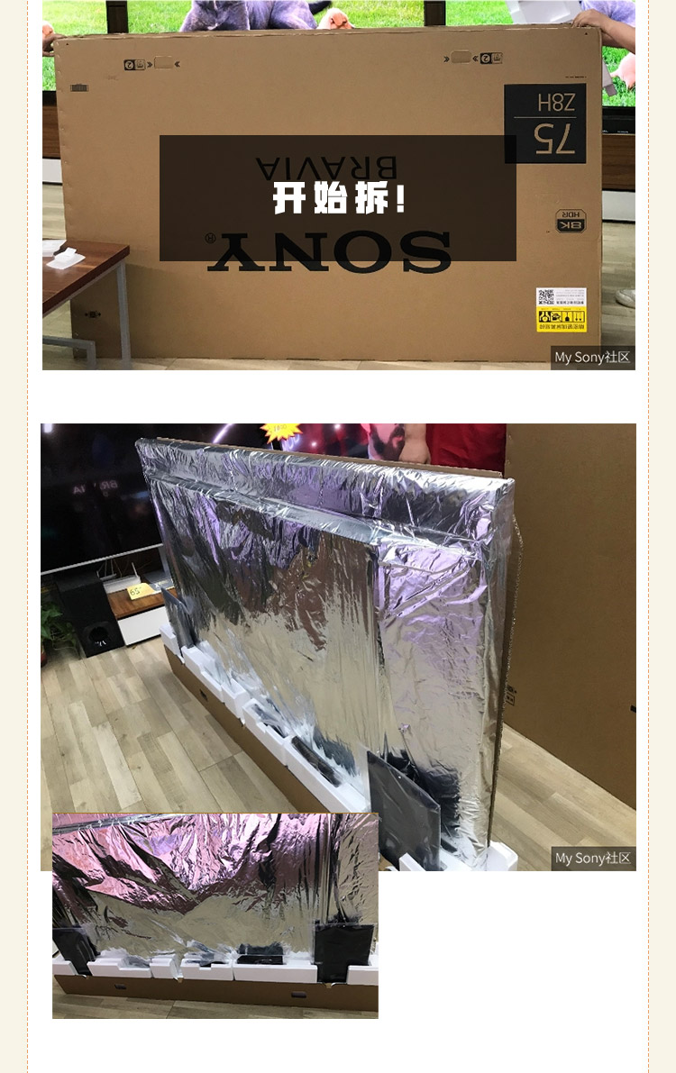 全部拆开之后,电视四周以及背面还有塑封,撕掉塑封的时候也太有仪式感了