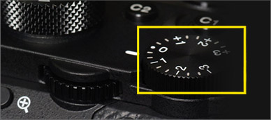 如主体背景较暗或为深色时,可将曝光补偿拨盘调至—方向。