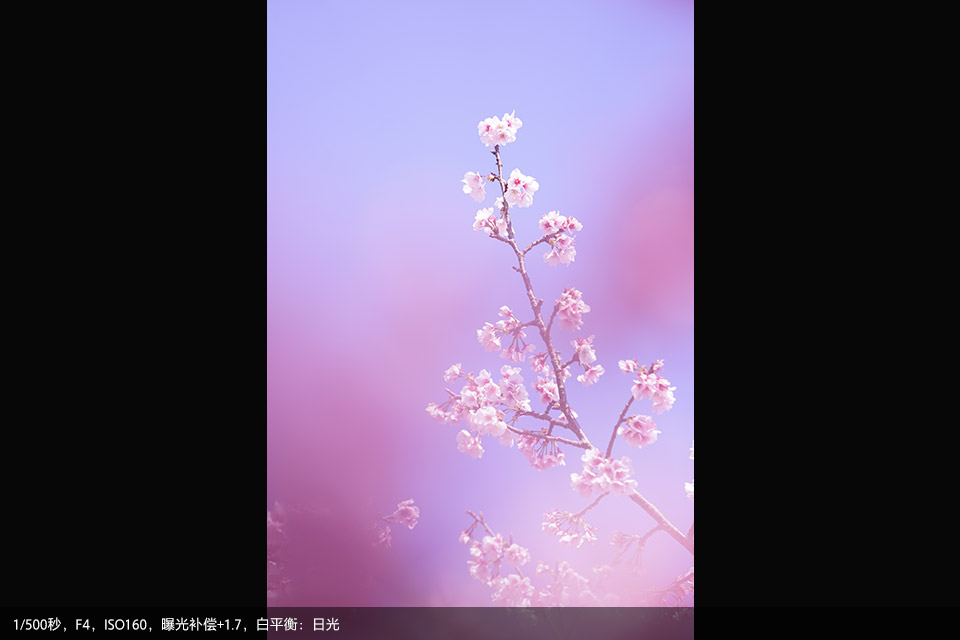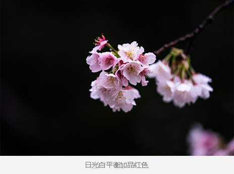 根据不同情况,在设置白平衡时设置不同的色调偏好能够得到不同的画面效果。比如在日光下拍摄樱花时,我们可以将日光白平衡中的色调加一些红,这样拍摄出的樱花会更粉嫩。