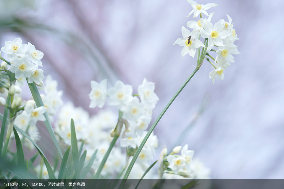 在拍摄过程花朵时,根据花朵背景的明暗,适当增减曝光补偿就可以得到截然不同的画面。