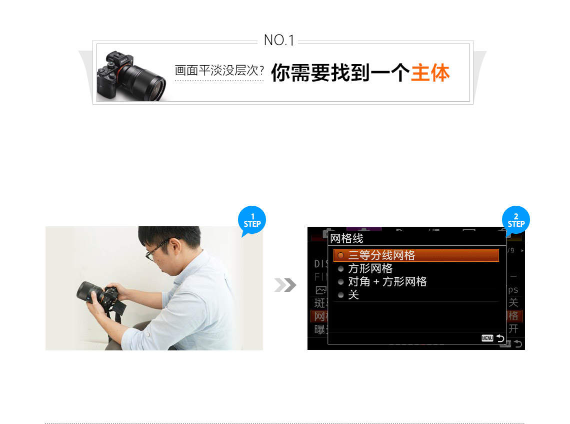构图时,建议将主体放在画面底部约1/3处的位置,既能符合人们的视觉喜好,也能带来足够的空间和纵深感。网格线的功能能够很好的辅助我们完成这个步骤。