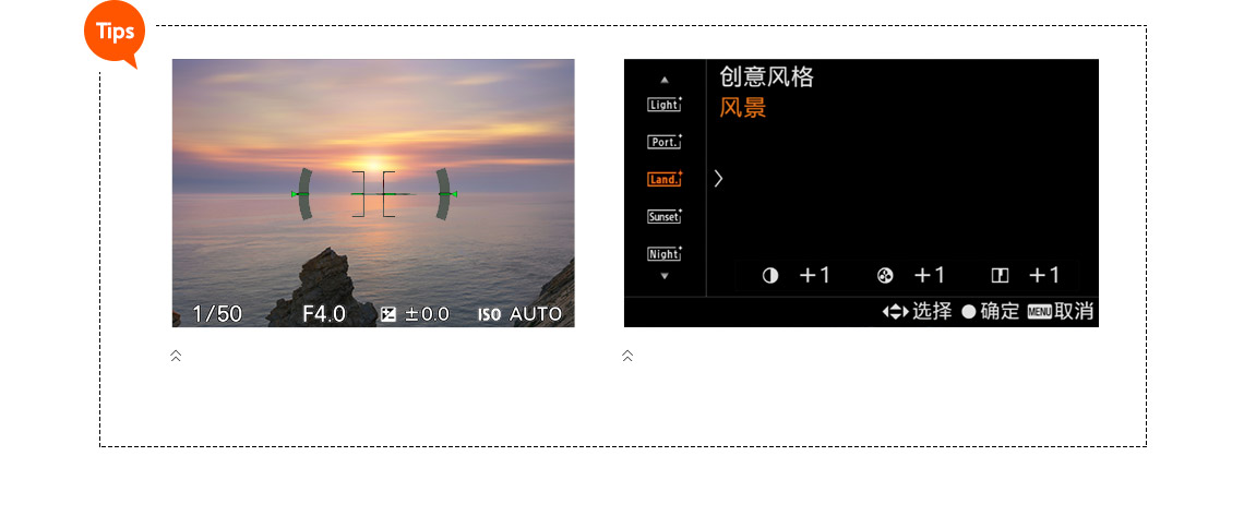 通过相机Disp按键打开机内水平仪,能更容易拍出天际线平直的照片,在大场景风光拍摄中均适用。