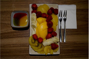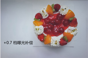 我们增加0.7档曝光补偿,可以看到主体的色彩还原的更加准确了,但是水果看起来还是不够有色泽,尤其是草莓,看起来还是偏暗。