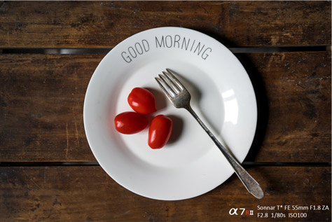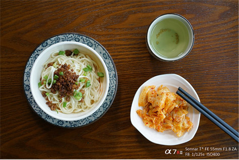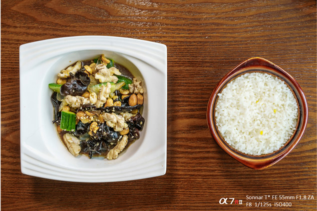 我最推荐的两支镜头就是SEL55F18Z和SEL35F14Z,两支都是蔡司镜头,拍摄时很容易就将食物的色彩进行还原到位。
