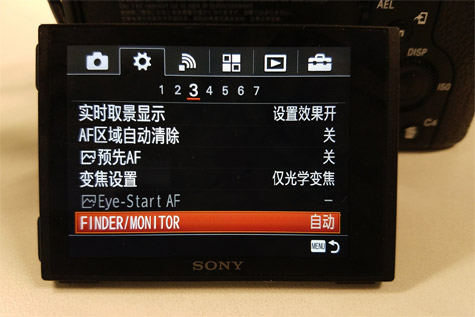 打开菜单-自定义设置-FINDER/MONITOR-根据自己的实际需要选择取景器或者显示屏就可以了