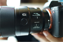 在镜头的侧面,有一个对焦限制器,因为拍摄美食需要贴近食物,所以将对焦距离固定在0.5m-0.28m这个对焦范围,是非常方便大家快速合焦的。