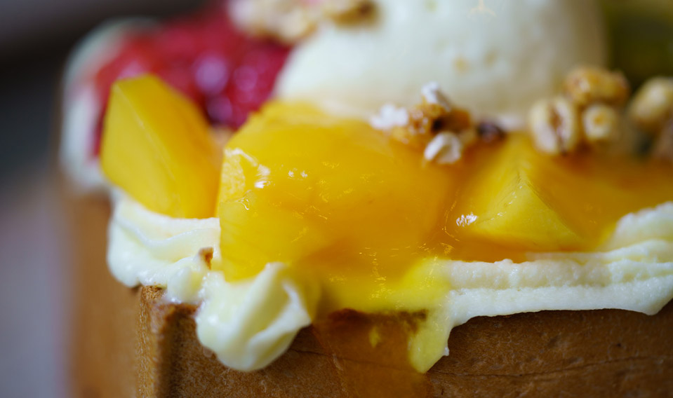 使用90mm焦段的镜头,配合F2.8的光圈,随后柔化背景中不必要的部分,焦点集中在食物本身,可以让食物具有强烈的主题感。并且细节分毫毕现。