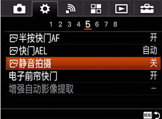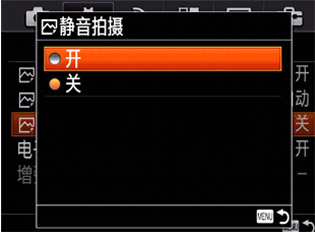 静音拍摄设置方法:“MENU”键选择“静音拍摄”开启,同时将“音频信号”关闭。