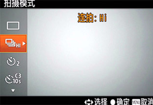 高速连拍设置方法:“MENU”键选择“拍摄模式”,使用“高速连拍”,也可以通过机身“Fn”功能菜单快捷键选择。