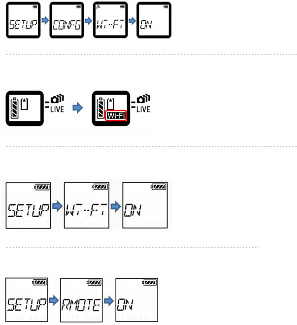 FDR-X1000V、HDR-AS200V/AS100V选择[ SETUP ]-[ CONFG ]-[ Wi-Fi ]-[ ON ]