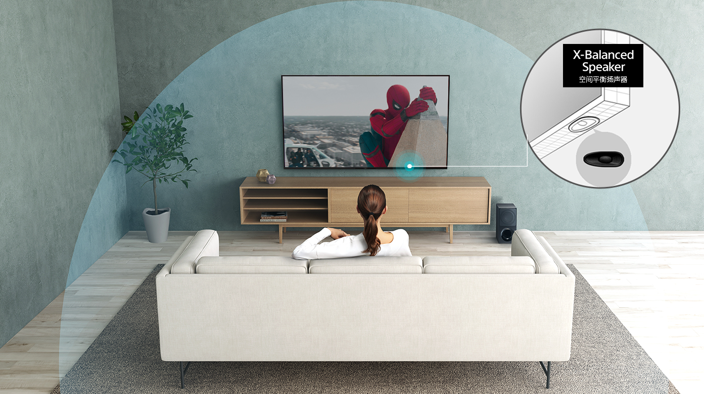 音响效果会受环境影响,电视机前摆放的物体会干扰声音传播、干扰音质。X85K能够根据现场环境,自动检测周围物体,并以此优化校准声场,让您获得理想的音响效果。