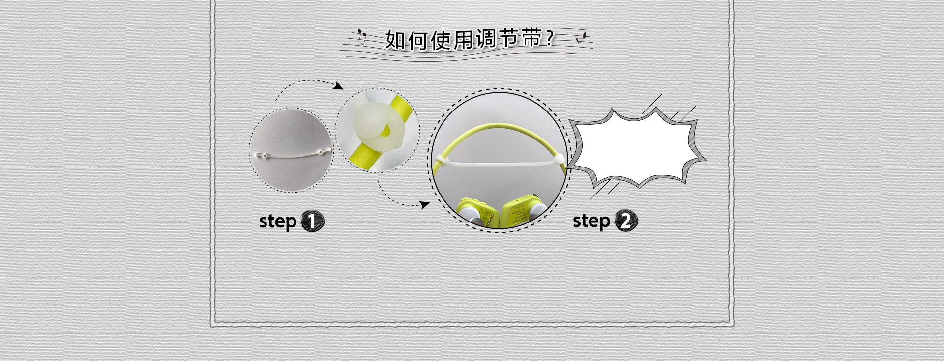 通过调节带两端的环扣,按图示方法将调节带固定在Walkman上。