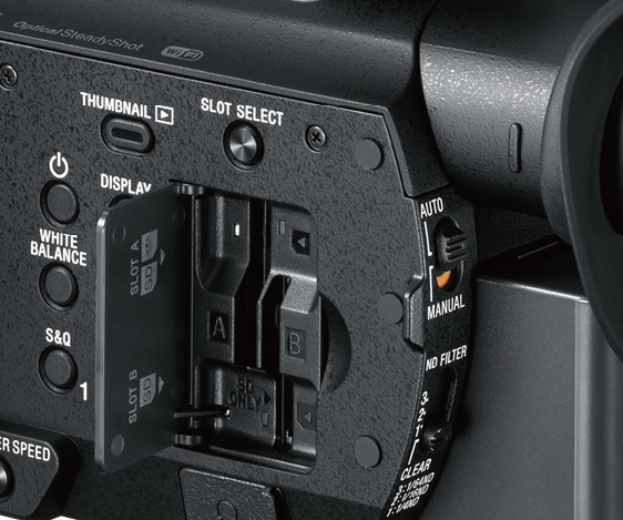 为了能延长记录时间,HXR-NX80专门配备了两个存储卡插槽,可兼容SDXC和SDHC存储卡。