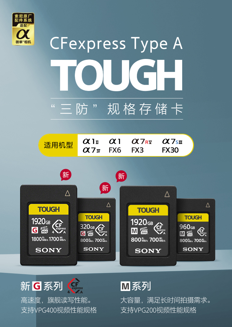 可在两张存储卡上同时录制高码率正式素材文件和低码率代理文件,也可使用双卡接力录制功能,实现无间断拍摄录制。双卡槽均兼容 CFexpress Type A* 以及 SDXC UHS-II/UHS-I 存储卡。