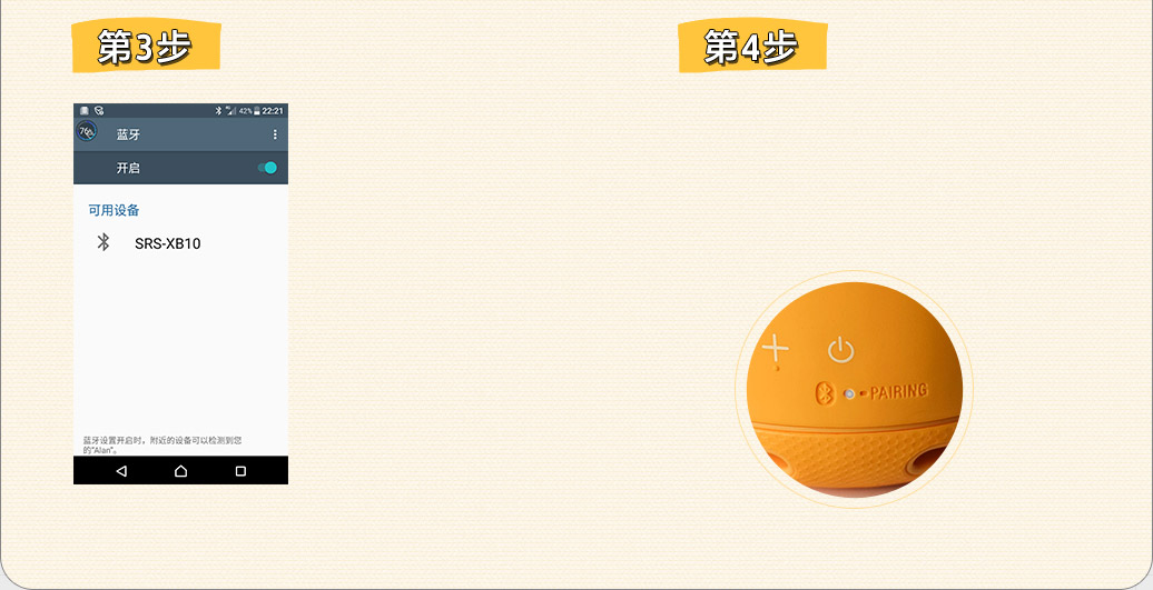 首次连接必须让设备和扬声器配对才能建立蓝牙连接,与其他设备连接,依旧需要执行相同的步骤。