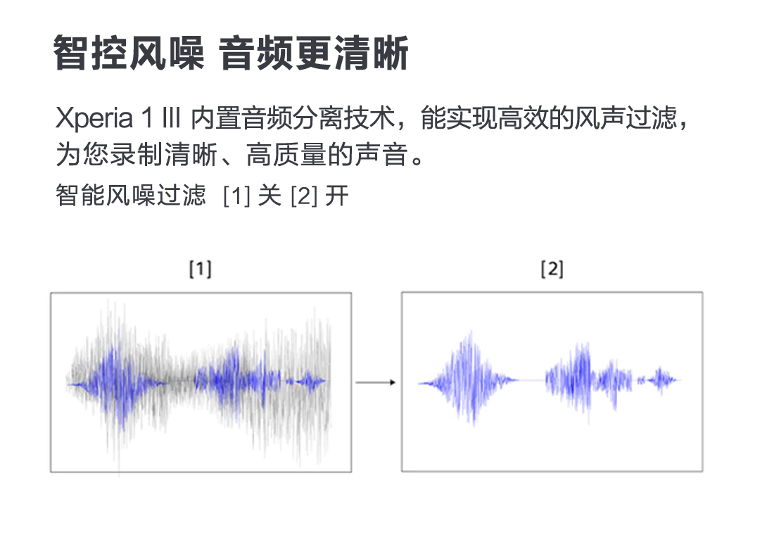 Xperia 1 III 内置音频分离技术,能实现高效的风声过滤,为您录制清晰、高质量的声音。