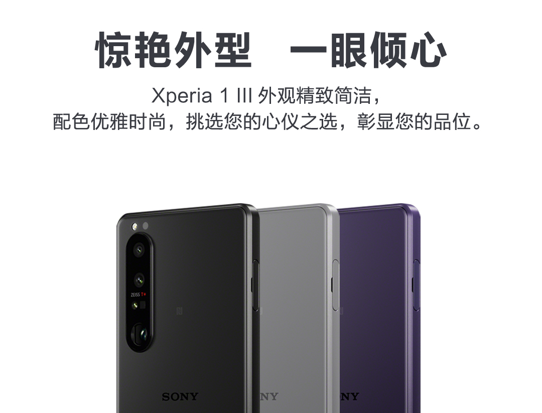 Xperia 1 III 外观精致简洁,配色优雅时尚,挑选您的心仪之选,彰显您的品位。