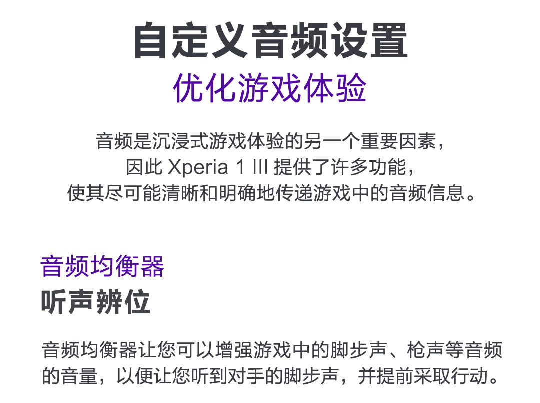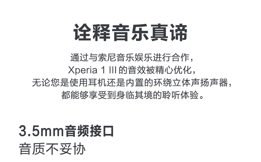 通过与索尼音乐娱乐进行合作,Xperia 1 III 的音效被精心优化,无论您是使用耳机