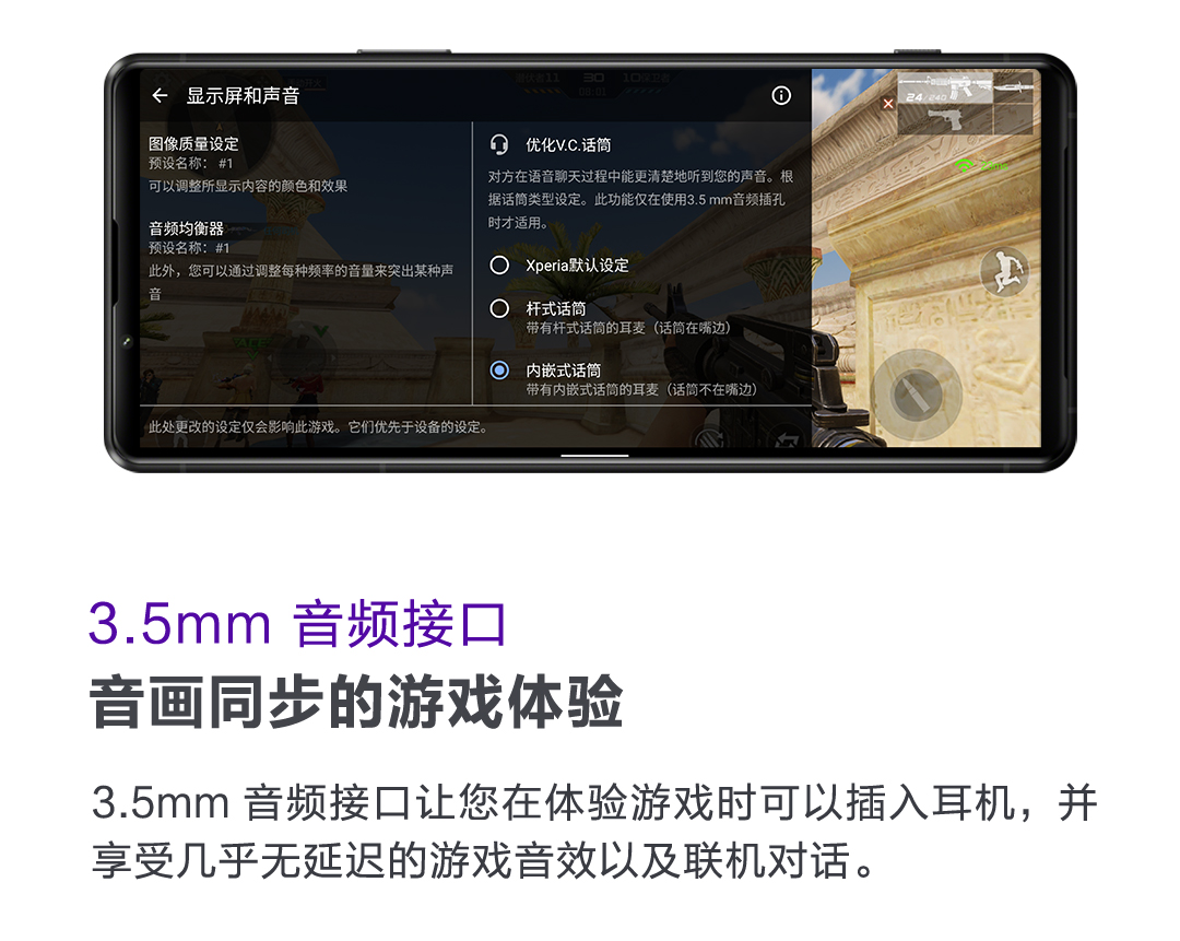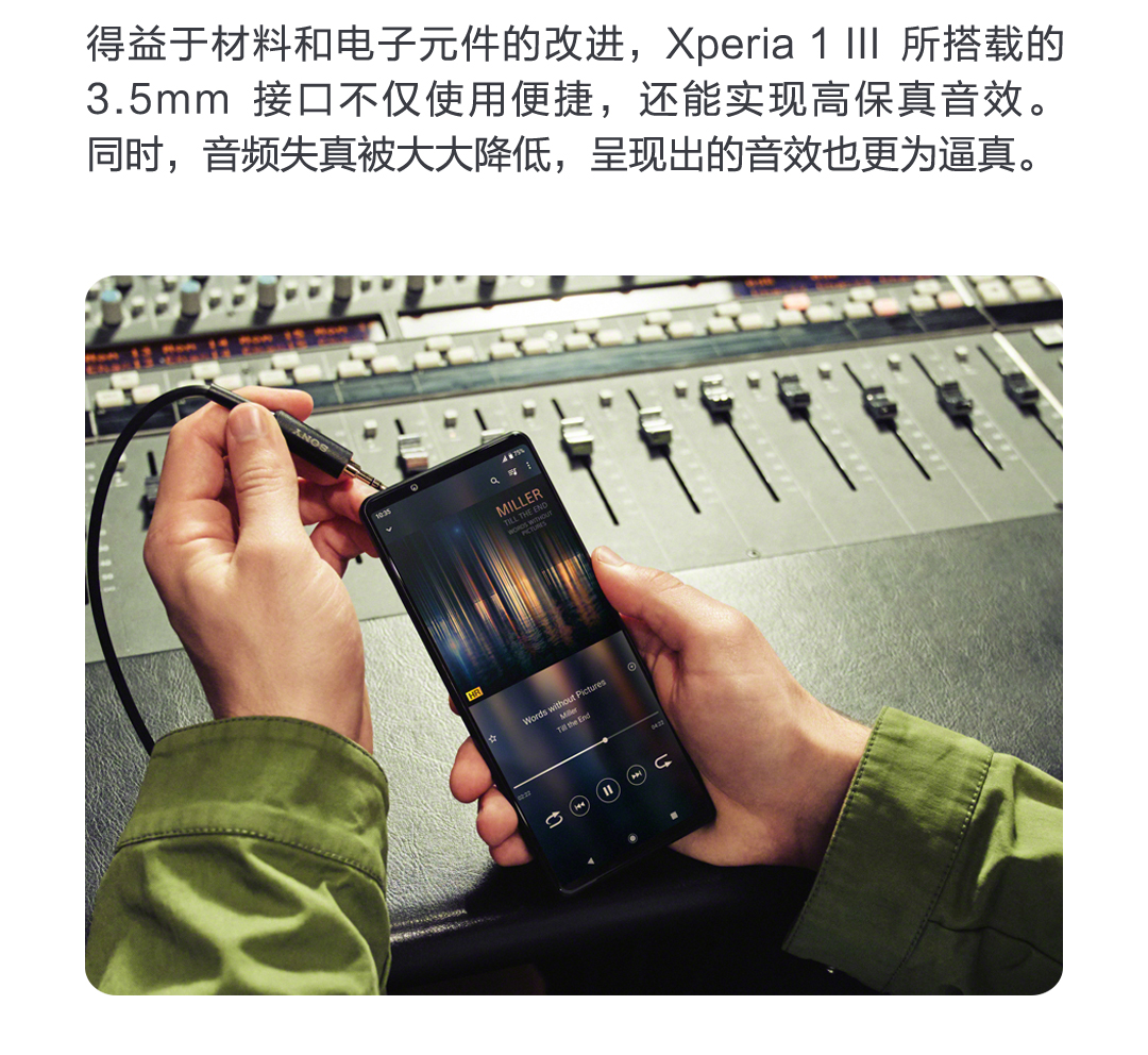 得益于材料和电子元件的改进,Xperia 1 III 所搭载的 3.5mm 接口不仅使用便捷,还能实现高保真音效。同时,音频失真被大大降低,尤其是在中、高音量之间,呈现出的音效也更为逼真—清晰的合奏,流畅的人声,以及深沉的低音。