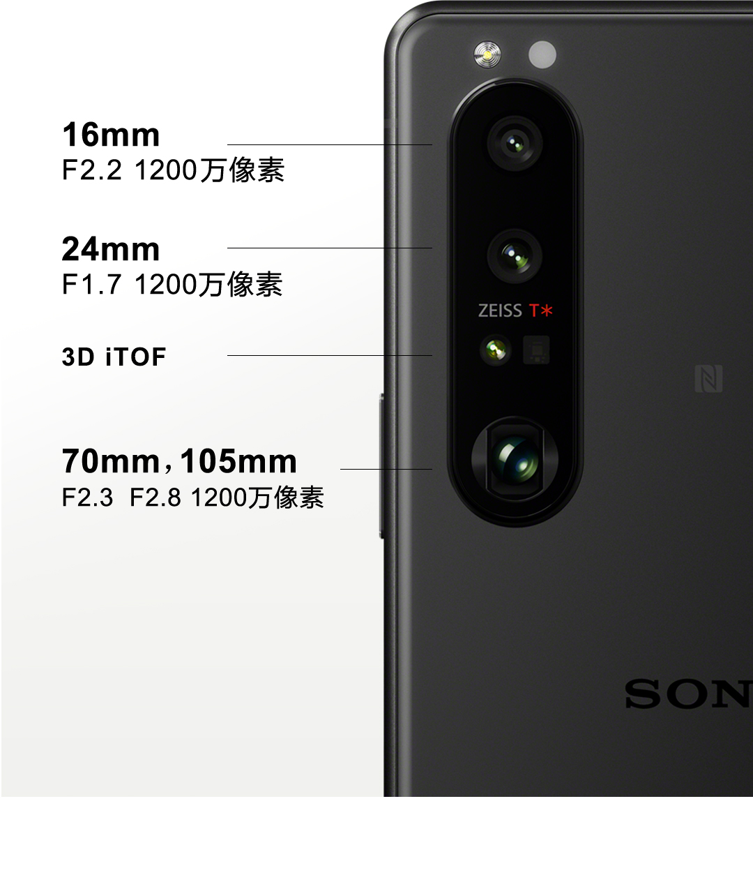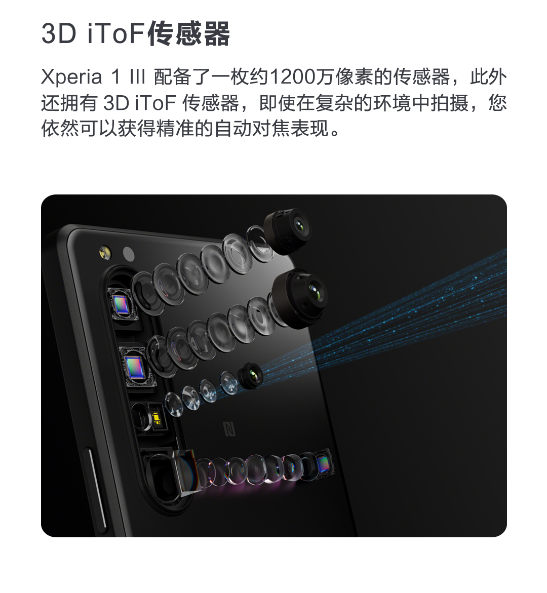 Xperia 1 III 配备了一枚约 1200 万像素的传感器,此外还拥有 3D iToF 传感器,可以实时计算相机与拍摄对象之间的距离。因此,即使在复杂的环境中拍摄,您依然可以获得精准的自动对焦表现。