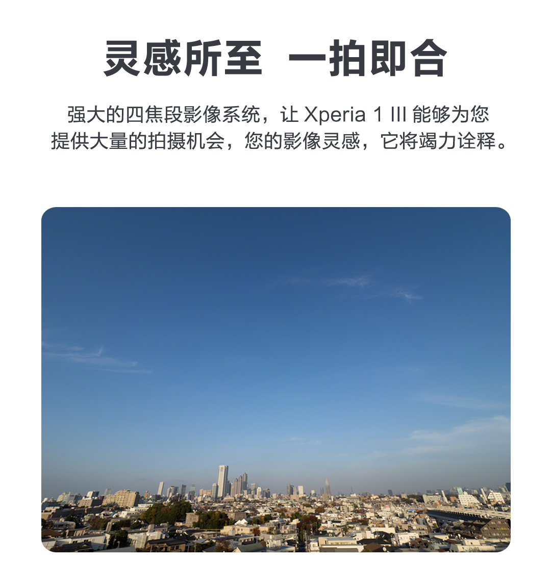 强大的四焦段影像系统,让 Xperia 1 III 能够为您提供大量的拍摄机会,您的影像灵感,它将竭力诠释。