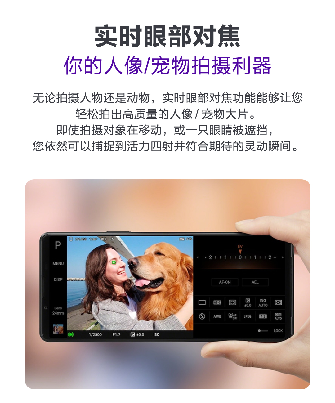 无论拍摄人物还是动物,实时眼部对焦功能能够让您轻松拍出高质量的人像/宠物大片。