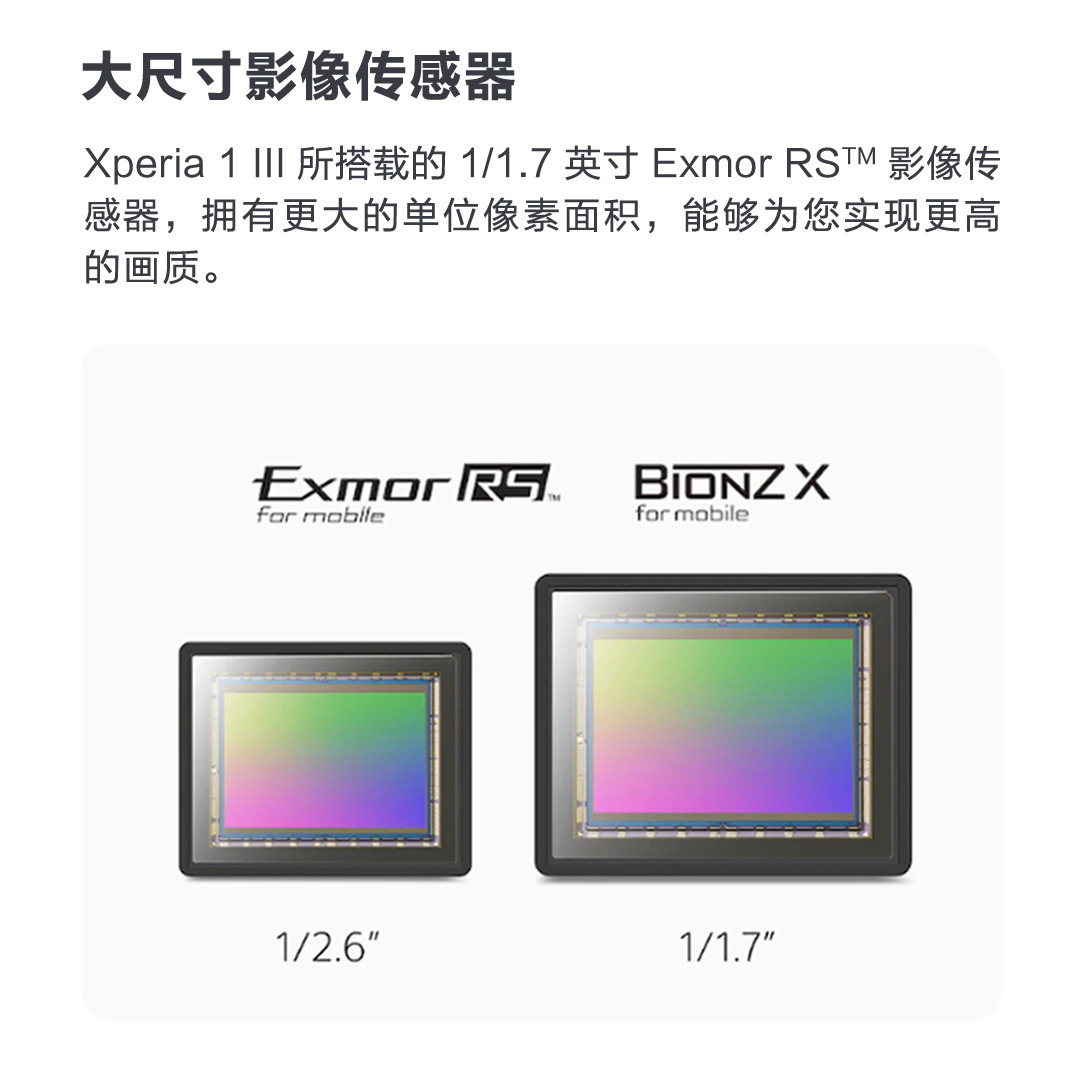 Xperia 1 III 所搭载的 1/1.7 英寸 Exmor RS™ 影像传感器,拥有更大的单位像素面积,能够为您实现更高的画质。