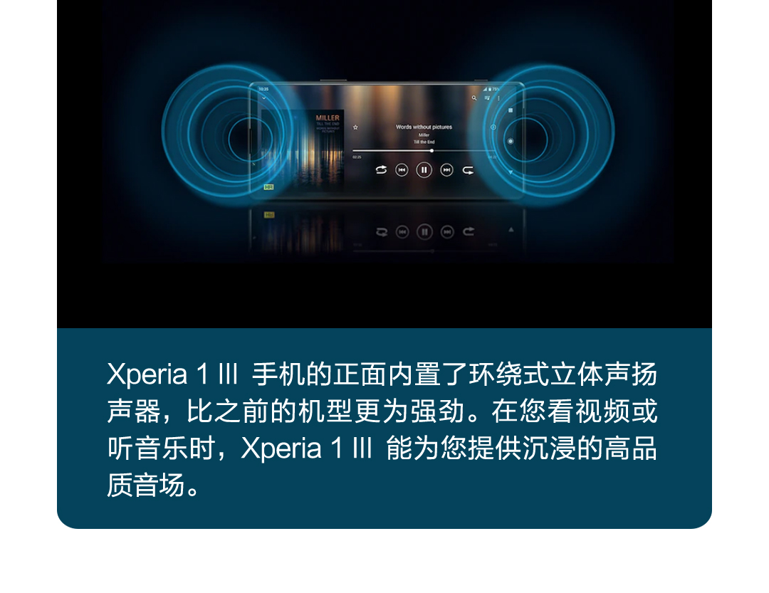 优化的扬声器设置,也是 Xperia 1 III 出色聆听体验的一个重要因素。