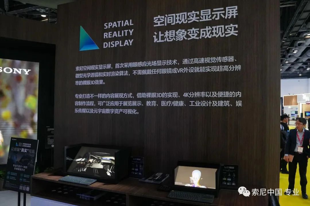 本次索尼展位中尤其吸睛的,就是索尼空间现实显示屏,很多业界人士也称其为索尼裸眼3D显示器,让创意“真实”可见。