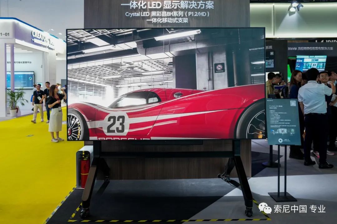 此次,年初发布的索尼Crystal LED黑彩晶两个系列新品双双公开展示,其中CH系列搭配SLS-1A紧凑型扬声器,为观众呈现大型显示设备和配套音频的沉浸式体验解决方案,凭借惊艳的视觉效果,引人注目的220英寸4K屏幕为观众带来身临其境和音画一体的视听体验;BH系列配合移动支架,展现了灵活高效的高品质一体化LED显示解决方案,可以满足不同行业和场景的应用需求。