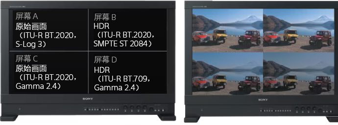 实现 4K/HD HDR 视频和 HD SDR 视频的同步制作;可选购许可证,当您监看 SDR 或 HDR 信号时,它可承担SDR调色工作,使图像不存在饱和的亮光区域或挤压的暗光区域。有三种许可证可选: