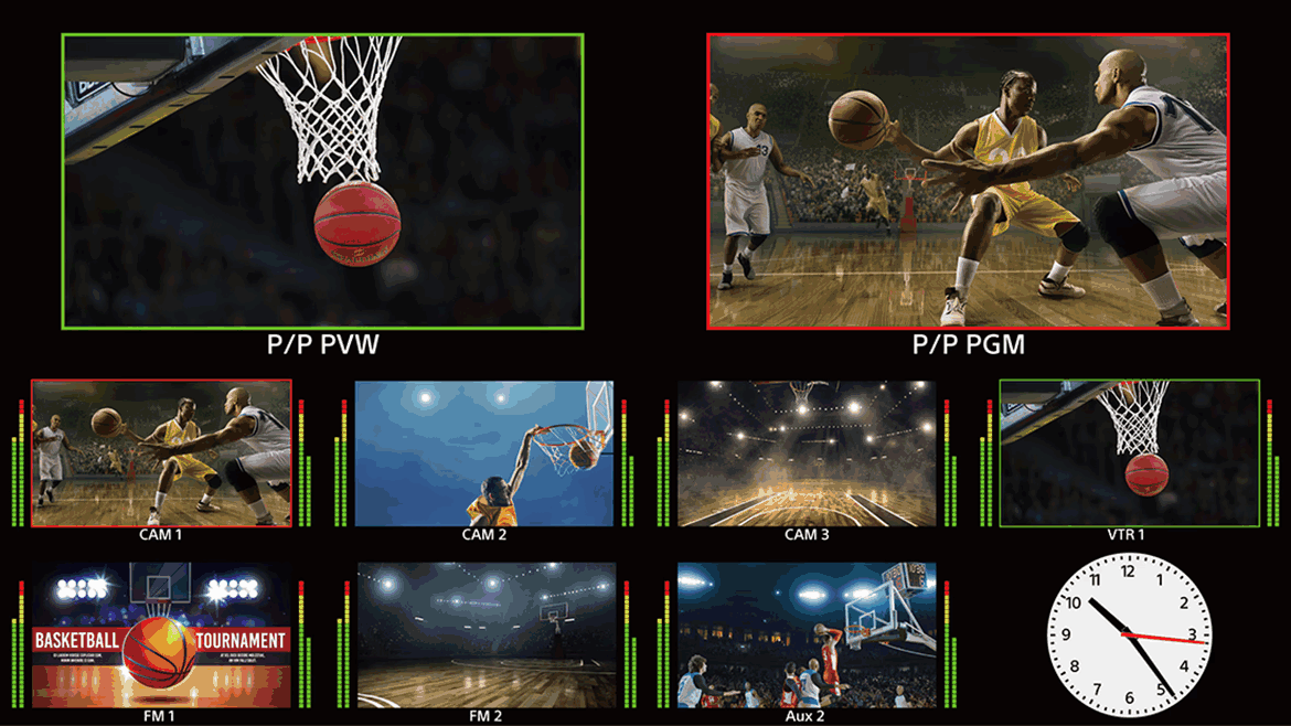可选 GPU 包提供基于文件的剪辑播放器,该功能首次集成到索尼的直播制作切换台中。高清模式下为四通道,4K(UHD) 模式下为两通道。可以存储和播放多个剪辑,每个高清和 4K(UHD) 内容的时长上限为 60 分钟。支持 MOV 或 MP4 容器格式广泛可用的 AVC 编解码器文件。