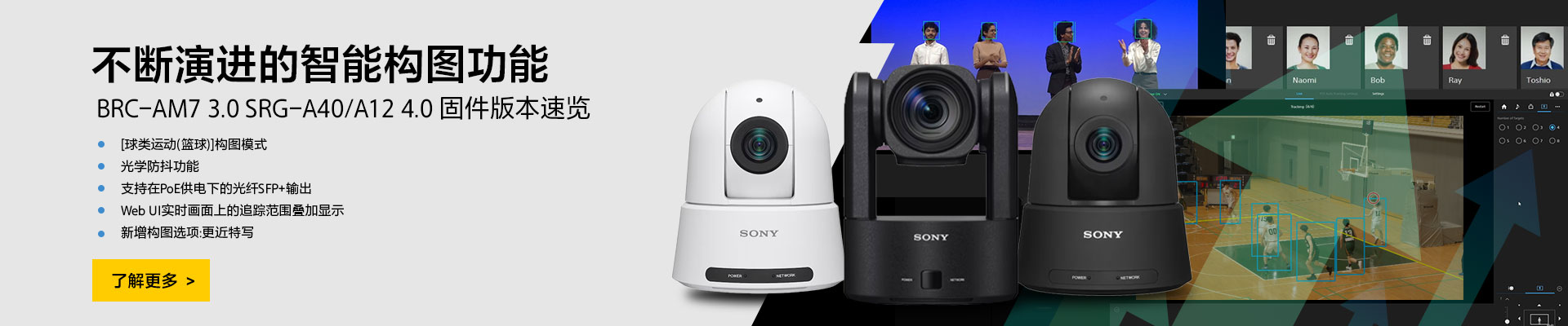 IPv4:TCP, UDP, ARP, ICMP, HTTP, HTTPS, DHCP, DNS, mDNS, RTP / RTCP, RTSP, VISCA over IP, SRT, NDI|HX, FTP, FTPS, NTP, S700PTP, RTMP, RTMPS, PTP-IP over SSH, SSDP, TSL-UMD
