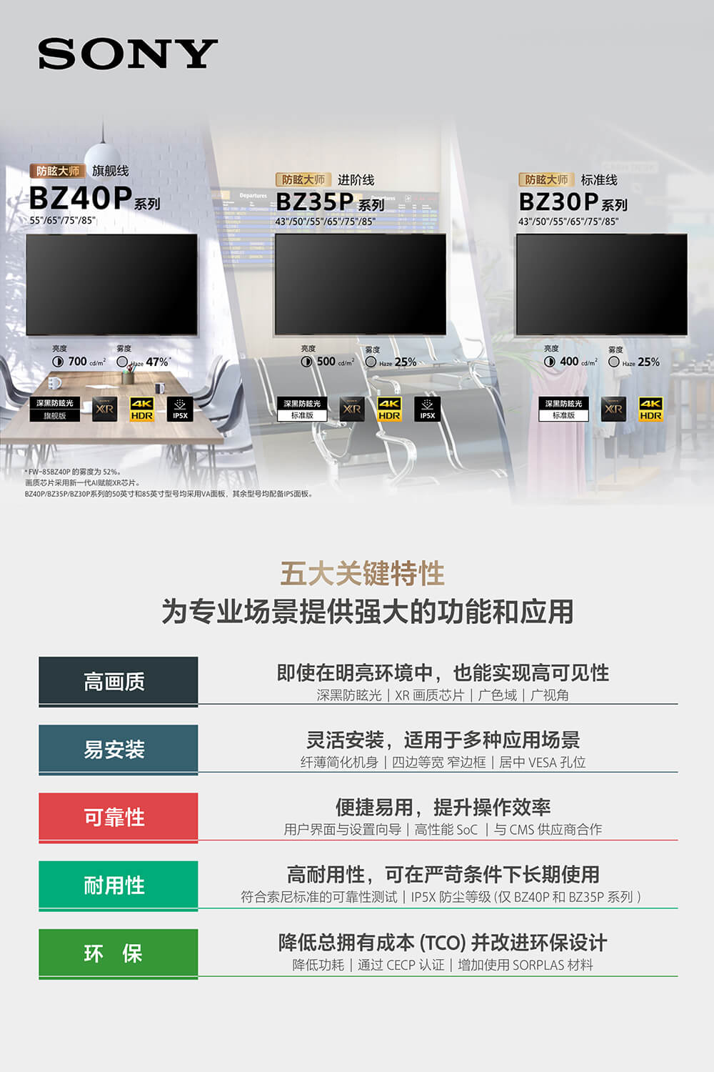 防眩大师进阶线 65英寸BRAVIA 4K HDR商用显示器